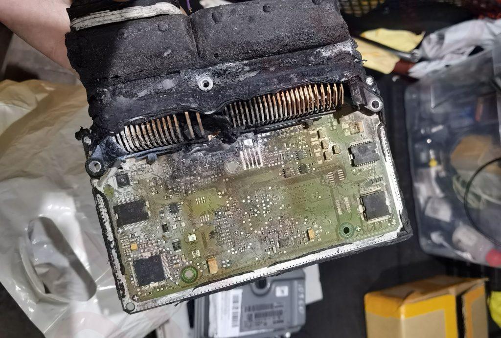 Обратился владелец Volvo S80 2009 после пожара моторного отсека с просьбой привязать к автомобилю новый ЭБУ двигателя (ECM). Старый блок не подавал признаков жизни, считать информацию из него другие мастера не смогли.
