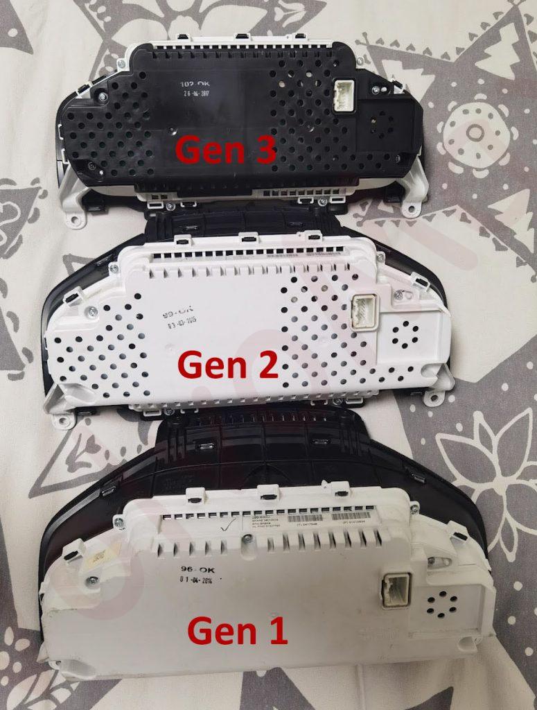 Существует 3 поколения приборных панелей, визуально их можно отличить по обратной стороне: