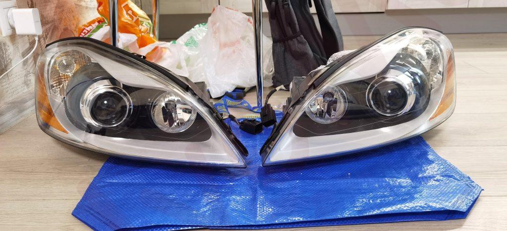 Т.к. нужны еще и блоки управления, то разумно искать фары от той же самой модели автомобиля. Были найдены доноры и фары для временной езды с небольшими дефектами, либо сломанным крепежом, битыми стеклами от леворульных автомобилей.