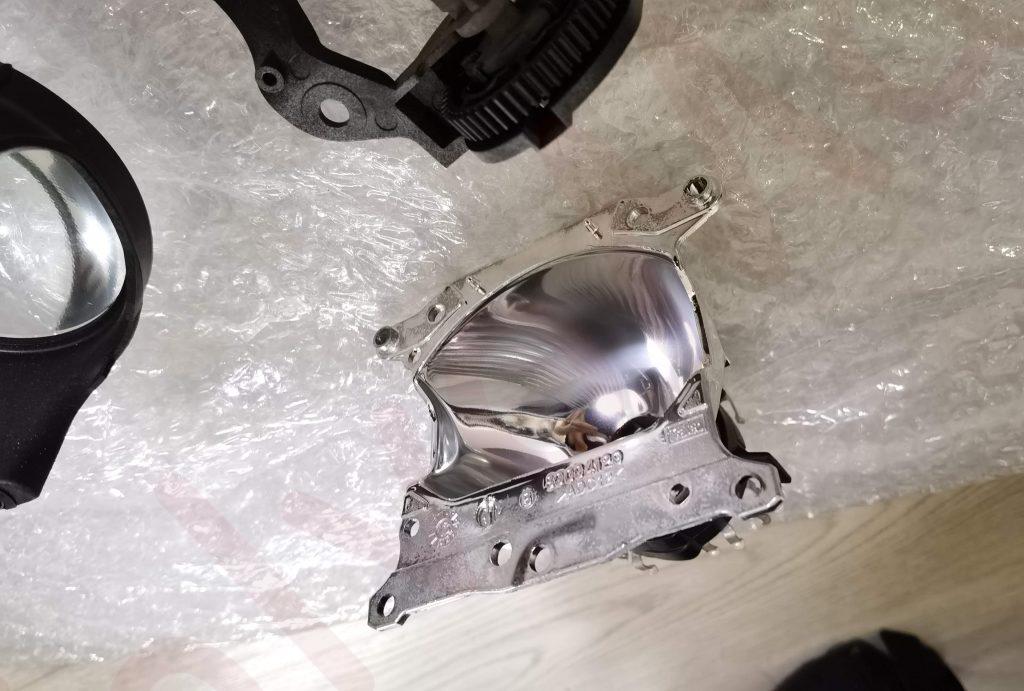 Так выглядит разобранная линза Valeo Intellect. Вместо обычной шторки у нее, так называемый, вращающийся “барабан”, который формирует разную форму светового пучка.