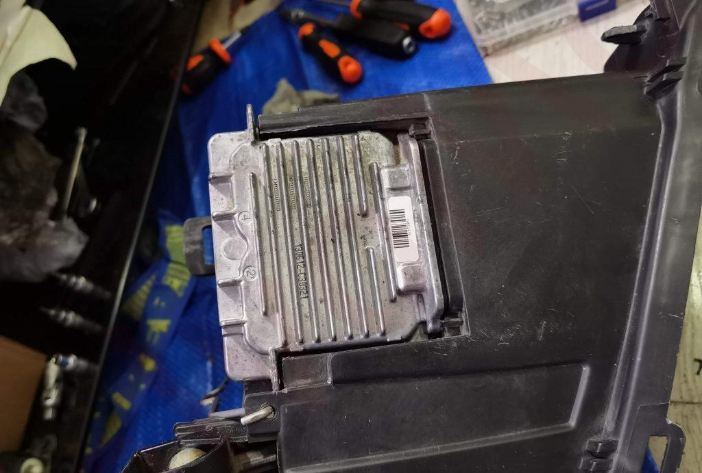 Блок розжига так же был заменен на рестайловый Valeo 7G Green D3S (89089352) – был куплен на авито от Grand Cherokee. Пазы в корпусе фары под блок пришлось расширить гравером.